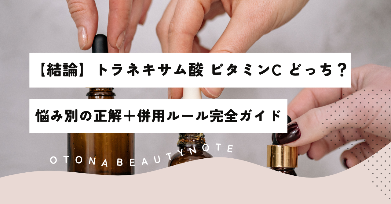 トラネキサム酸 ビタミンC どっちで迷ったら、“悩みの主役”で選ぶ。両方あるなら朝夜で分けて併用し、回数を増やしすぎない。判定表に戻る